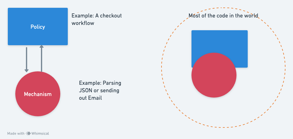 程式碼拆成 policy 與 mechanism 。policy 模組與 mechanism 模組各自有自己的 API。 參考的影片連結。