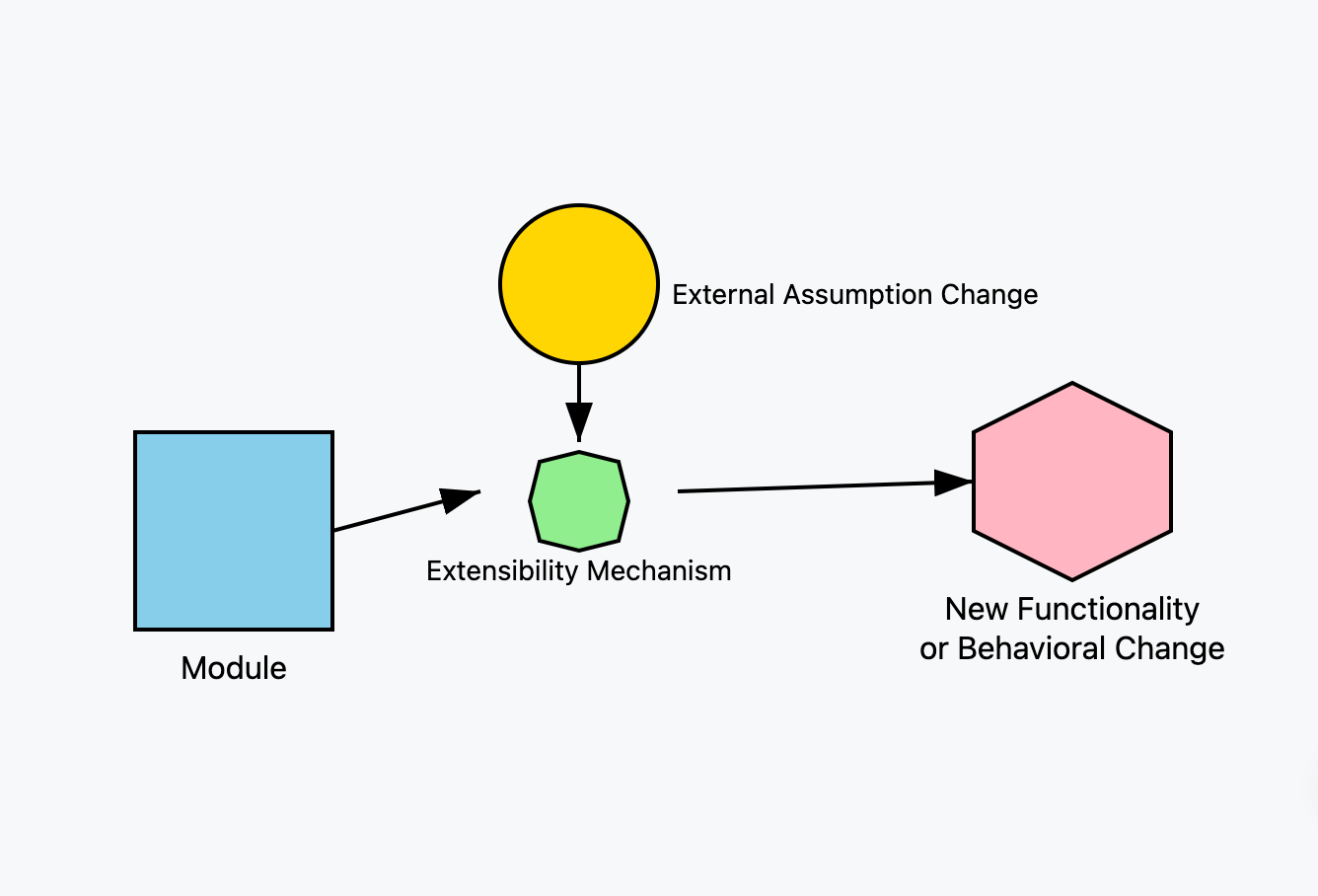 給定一個基於某些對外界假設而開發完畢的模塊或是區段程式碼,當外界假設變動時,在不做修改的前提下,透過既定機制增加或改變它的行為,使其適應新的需求。